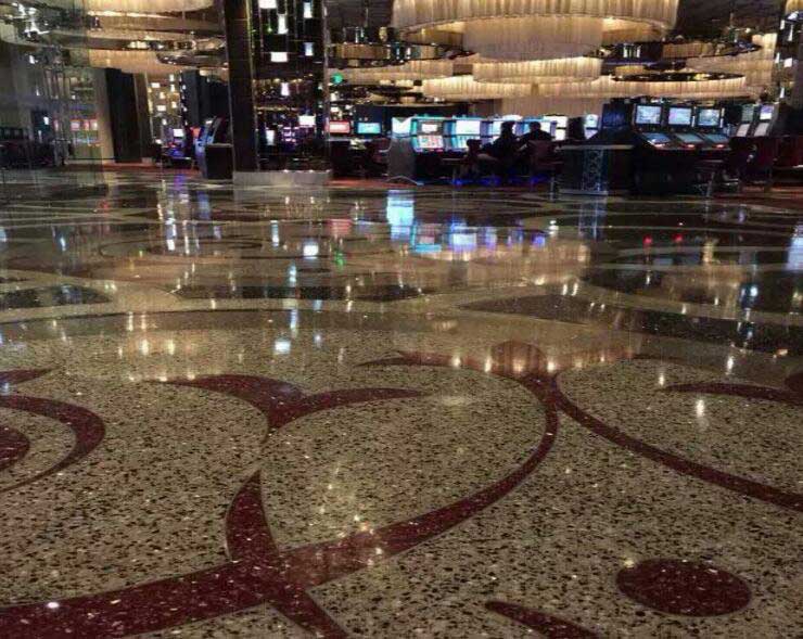 具備水泥自流平很強的流動性,不同的是自流平水泥魔石地坪,可通過添加多變的骨料(水晶、花崗石、漢白玉、彩石、玻璃顆粒、云母片、彩貝),使得無縫大面積自流平魔石地坪得以誕生!再經過精細研磨拋光可實現迷人的光彩。甚至可以通過金屬分割條。設計出不同的個性化圖案,更為建筑設計師的靈感插上飛翔的翅膀。